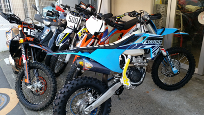一昨年12月から乗り始めて エンデューロコースのみ使用。K主任の元 ハードな練習 多々(苦笑)&レースも2回出走。各部のグリスアップ、点検 他 交換部品ありでの入庫。