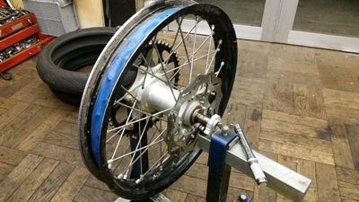 リヤタイヤ交換もついでにご依頼でしたが スポークトルク点検調整(後で フロントも見ます)。ハード使用のわりに 通常使用によるトルク抜け程度でした。