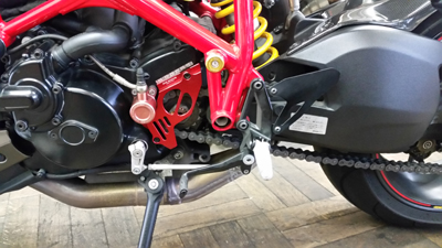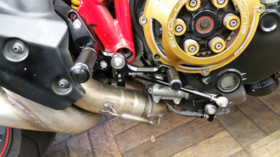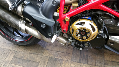 昨年から見させて頂いているご近所さん KDさんの ドカ ストリートファイターS。最近チョコチョコとカスタム意欲が沸いているらしく 前回はブレンボラジアルマスター化で、今回は バックステップ化依頼です。