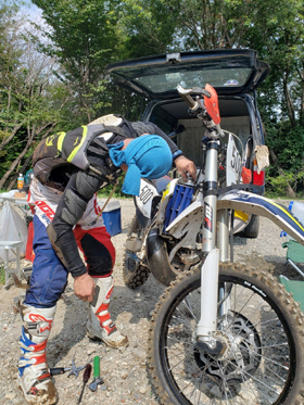 こういったトラブルもライダー自身で対応しなければいけないのがオンタイムエンデューロの基本ルールです。JECっぽいシチュエイションをいきなり体感することになるとは。