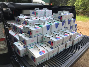 クロスパーク勝沼のJECは 参加者全員に 参加賞頂けるのも有名です。今回は ぶどうの詰め合わせ。入賞者は これが大きい箱でした。嬉しいかぎりですね。
